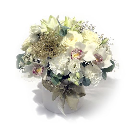 - Összeállítás: Kiváló minőségű, friss, világos árnyalatú virágok.